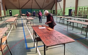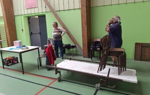 De nombreux archers ont participé à l'installation ; la veille pour la mise en place des tables, le matin pous aider les exposants à s'installer, toute la journée, à tour de rôle, ils ont tenu le bureau des entrées et le soir à la remise en ordre de la salle.